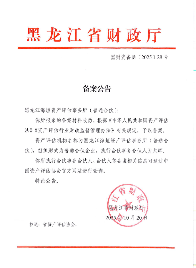 备案公告(黑龙江海垣)